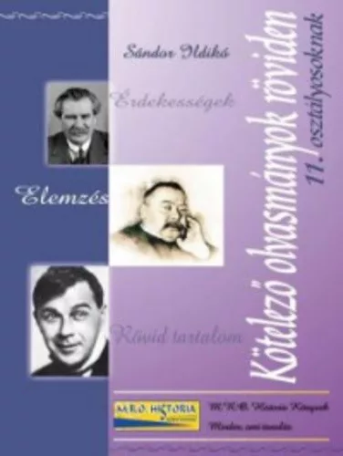 Az irodalomtanulás, a tanuló felkészültsége és tudása nem lehet teljes a kötelező olvasmányok ismerete nélkül. Jelen kötetünk a 11. osztály magyar és világirodalmi kötelezőit dolgozza fel, segítséget nyújtva ezzel a diákoknak a kötelező irodalmak megismerésében. A drámai alkotások egy másik kiadványunkban találhatók, mely Kötelező drámák röviden 9-12. osztályosoknak címen jelent meg.